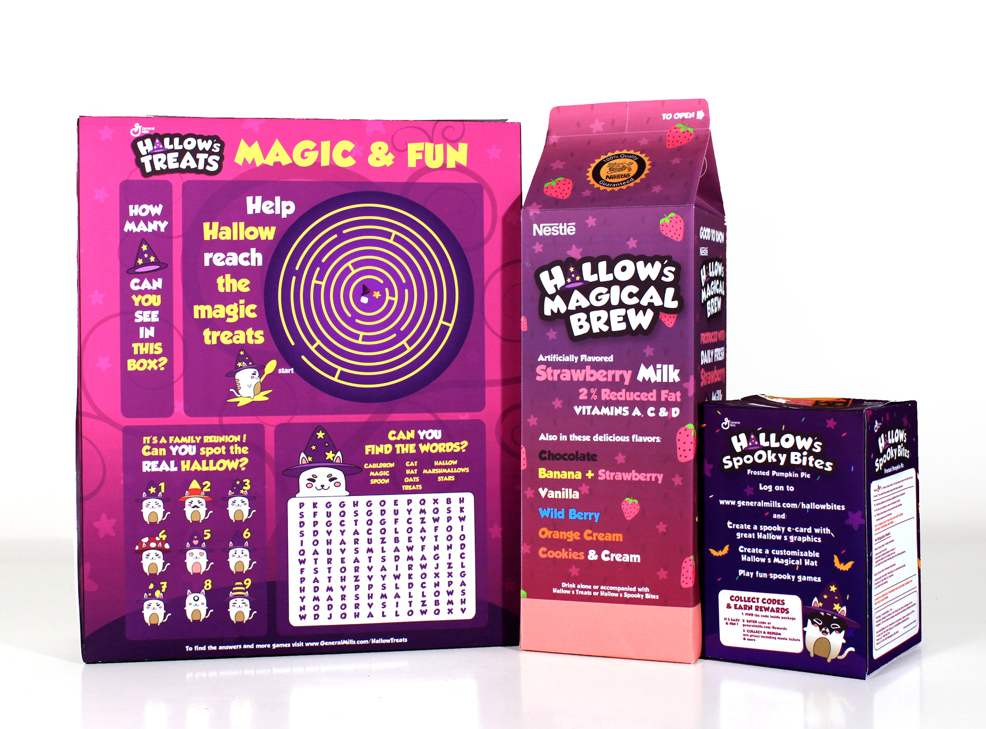 Concept for a Halloween inspired breakfast line featuring Hallow the Magic Cat. Hallow's treats, Hallow's Spooky Bites and Hallow's Magical Brew products will surely make breakfast time a lot more fun and extraordinary!